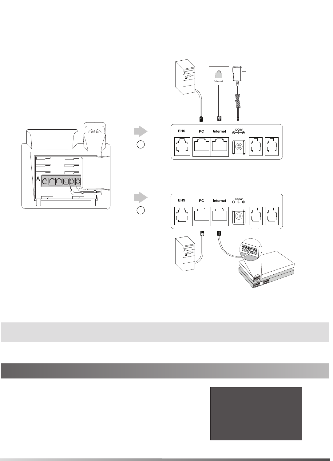 Note: If inline power (PoE) is provided, you don’t need to connect the power adapter. Make sure the hub/switch is