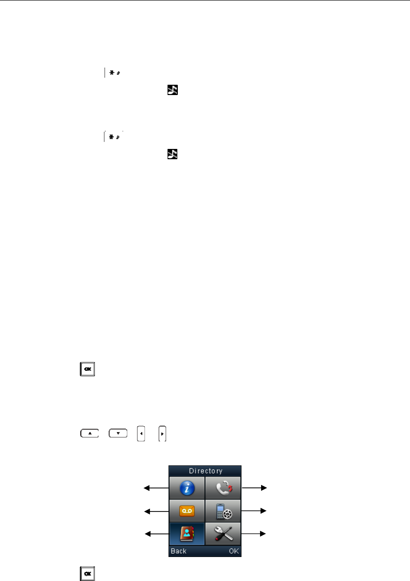 1. Longpress untiltheLCDscreenpromptsthemessage“Al lRingTonesOff”.