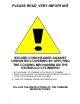 PLEASE READ, VERY IMPORTANT SECURE CORN HEADER AGAINST UNWANTED LOWERING BY APPLYING THE LOCKING MECHANISM ON THE HYDRAULIC CYLINDERS! 1. ATTACH HEAD TO COMBINE, LOCK HEAD TO COMBINE 2. RAISE THE HEAD OFF THE GROUND AND ENGAGE THE SAFETY STOP ON THE FEEDER HOUSE CYLINDER. 3. TURN OFF COMBINE ENGINE AND REMOVE KEY. FOLLOW THE INSTRUCTIONS OF THE COMBINE MANUFACTURER.