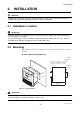 3. INSTALLATION 3. INSTALLATION WARNING Installation of the magnetic flowmeter must be performed by expert engineer or skilled personnel. No operator shall be permitted to perform procedures relating to installation. 3.1 Installation Location IMPORTANT Install the instrument in a location where it is not exposed to direct sunlight. For ambient temperature, refer to Chapter 11 “OUTLINE”. The instrument may be used in an ambient humidity where the RH ranges from 0 to 100%.