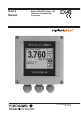 17 4-3-1. Actual mA1 = the current output in mA of the first current output, which is defined as mA1. The range and function of this mA output can be set in: Routing: Commissioning >> Output setup >> mA1 4-3-4. C.C. (factory) = the nominal cell constant as determined by the factory calibration during production. This value is set during commissioning, and is found on the nameplate of the sensor or the calibration certificate. Routing: Commissioning >> Measurement setup >> Configure sensor 4-3-5. C.C.