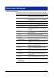How to Use This Manual Structure of this Manual This user’s manual consists of the following twenty-six chapters, appendix, and index. ChTitle Description 1 Before Using the Software Gives an overview of the API for the MX100/DARWIN. Describes the PC requirements needed to run the software, the installation procedures, and other information. 2 API for MX100 - Visual C++ - Describes how to apply the API to the MX100 using Visual C++.