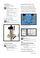 How to install the pneumatic tubes: 1 I nsert pneumatic tube ø = 6mm in connection 1 (blue) for the air supply “service” position. 2 Insert pneumatic tube ø= 6mm in connection 2 (black) for air supply, “meassuring position”. 3 Insert pneumatic tube ø = 4mm in connection 3 (blue) for the reply signal “service” position. 4 Insert pneumatic tube ø = 4mm in connection 4 (black) for the reply signal “measuring position”. 4.7 Installing the sensor Ensure that • the holder is in the “service” position.