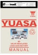 NOTES Further technical information available on request: • • • • • • • • • • • • • • • • • • • • • • • • • Transportation of Yuasa Batteries by Air, Sea or Road Effect of High Temperature on Battery Float Life Gas Production in Valve Regulated Lead Acid (V.R.L.A.) Batteries Safe Handling of product (C.O.S.H.H.) NP Batteries/BS6290 Part 4 Shelf Life, Self Discharge and Top Charging Pre-Installation Battery Checks Recovery of Sulphated Batteries Effects of Altitude on Valve Regulated Lead Acid (V.R.L.A.