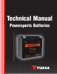 1 About About Yuasa About This Manual Yuasa Battery, Inc. has been producing batteries in the U.S.A. to uncompromisingly high standards since 1979. Today Yuasa Battery is one of the largest American manufacturers, distributors and original equipment (OE) suppliers of batteries for motorcycles, all-terrain & utility vehicles, snowmobiles and personal watercraft in North America. Yuasa supplies batteries to more powersports OE manufacturers than all other competitors combined.