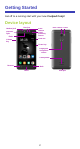 Getting Started Get off to a running start with your new Coolpad Conjr! Device layout Receiver Headset jack Front camera Light/ proximity sensor Indicator light Flash Rear camera Flash Card slot Volume key Power key Fingerprint recognition sensor Loudspeaker Recents Back Home USB port 2