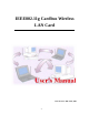 1-3 Product Kit IEEE802.11g Cardbus Wireless LAN Card comes with the following items. Please go through each item below. If any of listed items appears to be damaged or missing, please contact your local dealer. IEEE802.11g Cardbus Wireless LAN Card l l l IEEE802.11g Cardbus Wireless LAN Card….…………….………………….….….. x 1 802.11g PC Card Software and Documentation CD ………………….….... x1 IEEE802.11g Cardbus Wireless LAN Card Quick Installation Guide…….…..…..… x 1 1-4 About IEEE802.