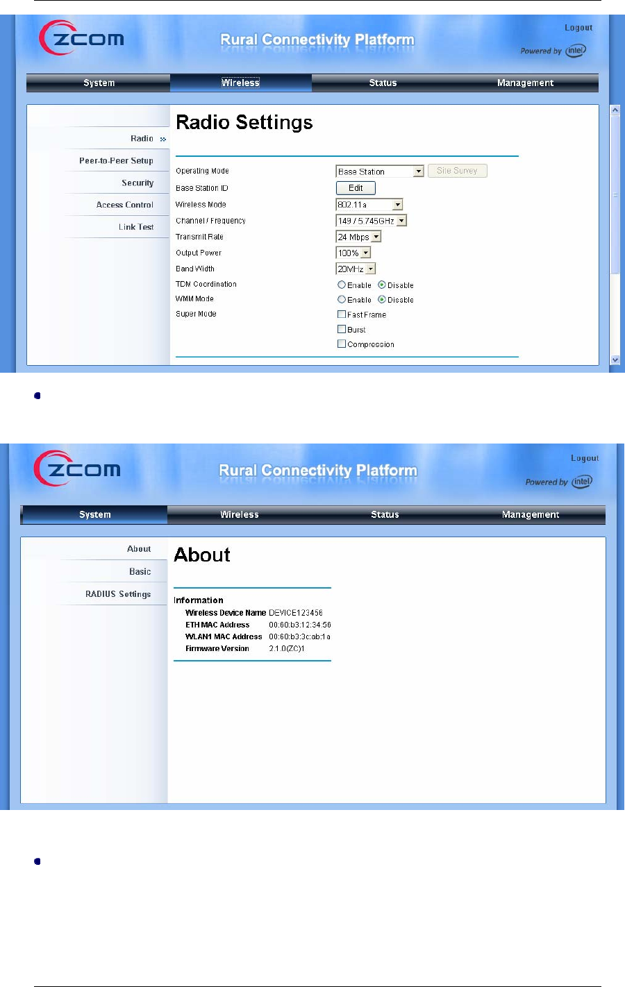 Wireless”, input the WLAN MAC address of the remote one to “Remote MAC Address