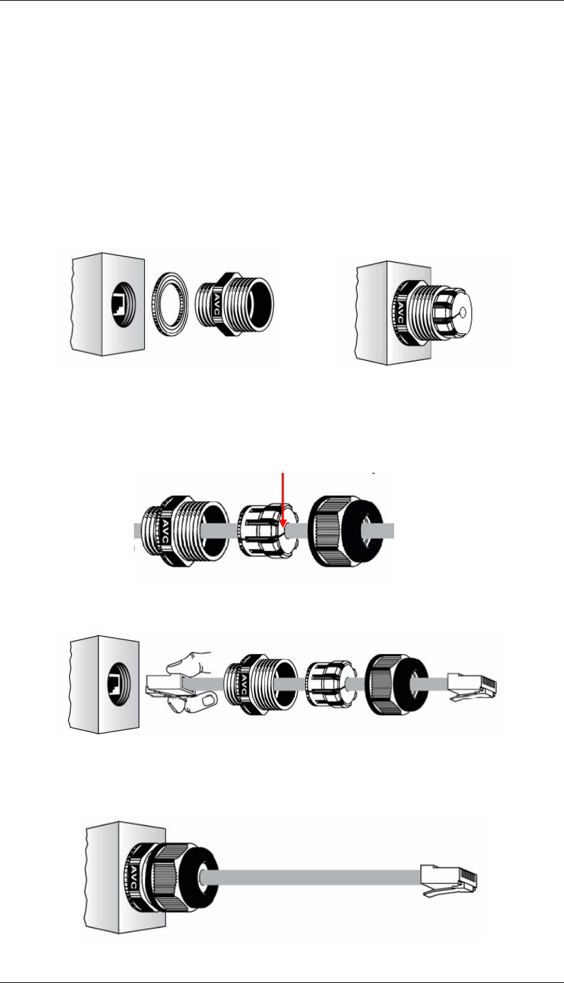 2. Slide the sealing nut to the RJ-45 cable from its middle breach and then insert the sealing