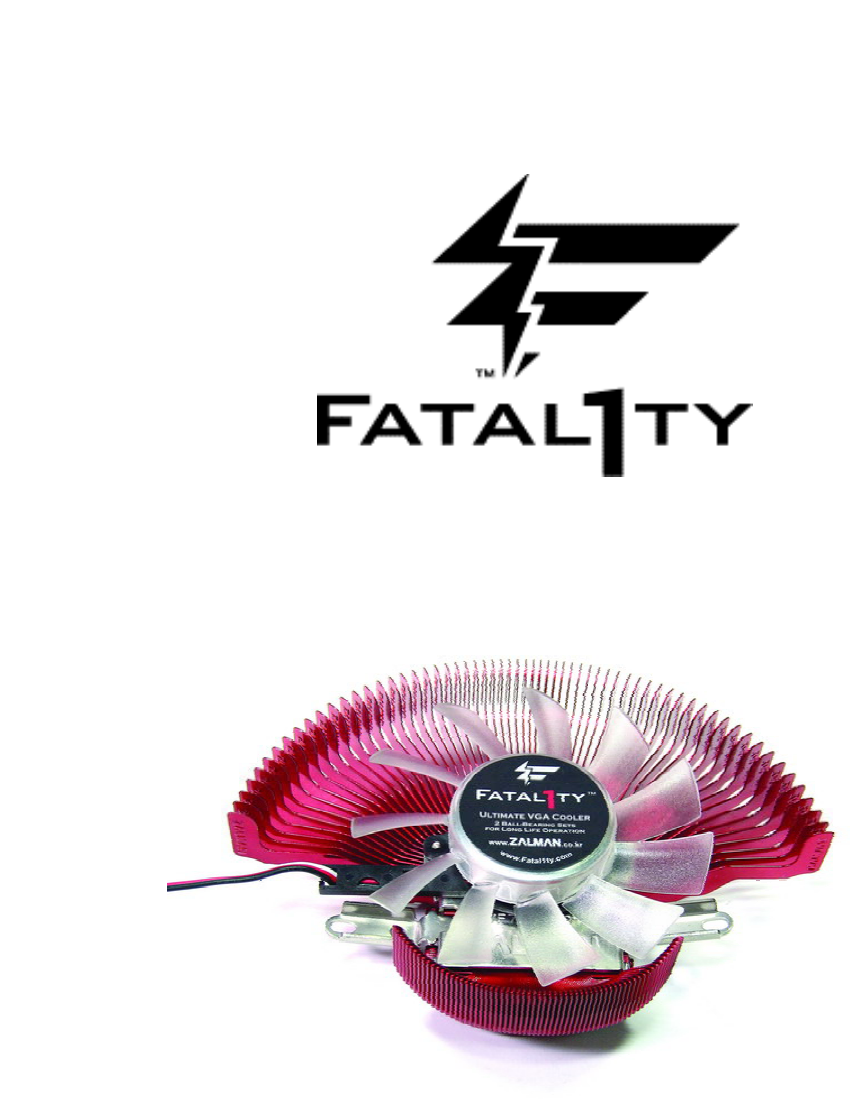 User’s Manual (English Version) 1. Important Notices 1.1) Please read this manual thoroughly before installation. 1.2) After installing this product on a VGA(Video Graphics Array) card, a PCI slot adjacent to the AGP (or PCIe) slot will become unusable. 1.3) Before installing on a newly released VGA card, please check for compatibility at Fatal1ty’s website* or Zalman’s website**. 1.4) This product is not compatible with Matrox VGA cards and NVIDIA PCX 5*** VGA cards. 1.