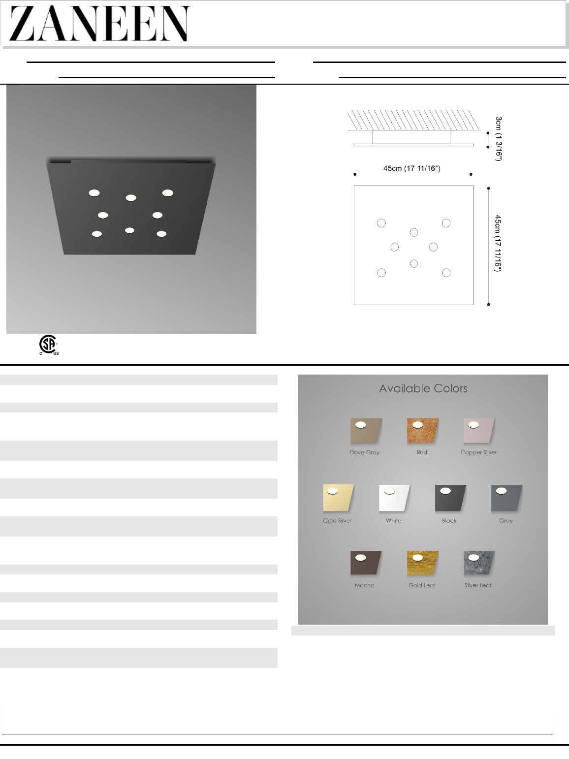 30 Tycos Dr. Toronto, ON Canada M6B 1V9 PH: 800.388.3382 / 416.247.9221 FAX: 416.247.9319 www.zaneen.com, tech@zaneen.com Page 1 of 2