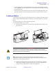 Installation and Setup Loading a Ribbon Caution • Do not touch the print head if the printer has been in service within the last 10 minutes. It could be very hot and cause a burn. Electrostatic Discharge Caution • A static discharge is possible if you touch any exposed metal parts. Use of an anti-static wrist strap or comparable anti-static protection is required. 4. Gently press the print head carriage down until it is fully lowered, as shown below. Very little force is neccessary to perform this step.