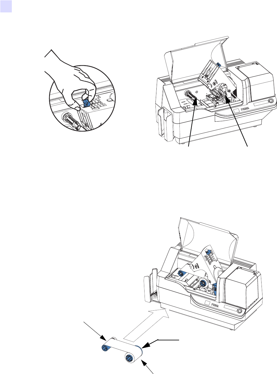 3. Locate the Ribbon Supply Spindle and the Ribbon Take-up Spindle (see above). Load