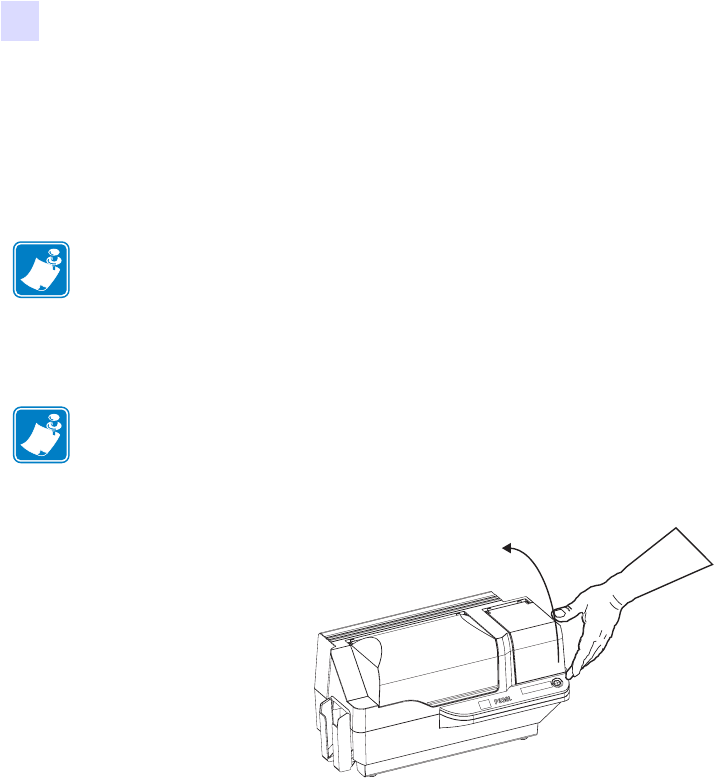 1. Open the Card Feeder cover. The cover is hinged; lift it by the lip at the right front corner.