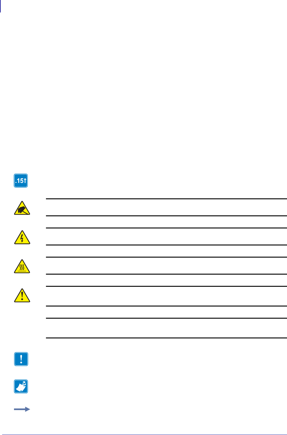 Caution • Warns you of the potential for electrostatic discharge.