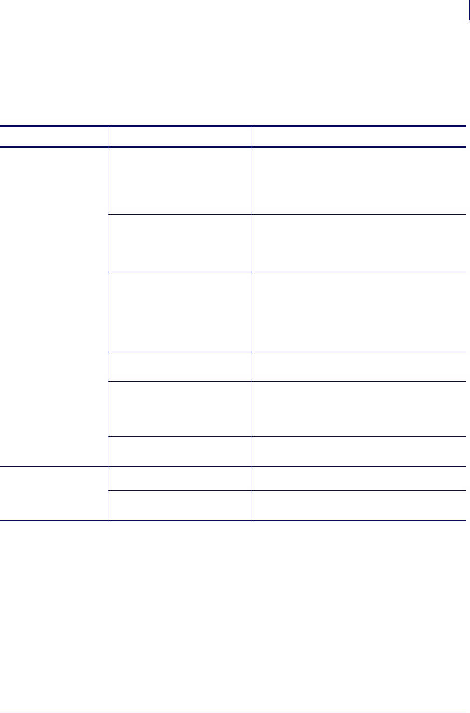 Table 12 identifies problems with print quality, the possible causes, and the recommended