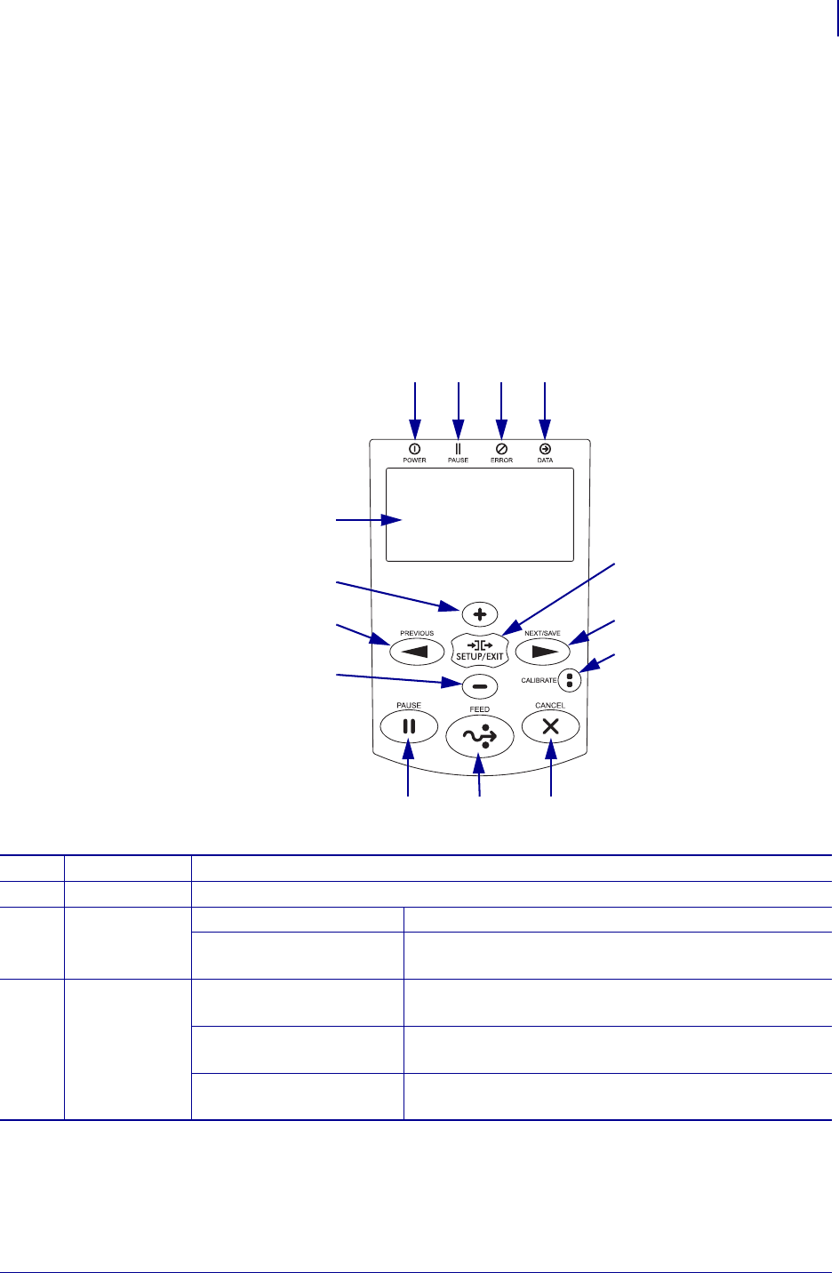 •The control panel buttons are used to control the printer operations and to set parameters.