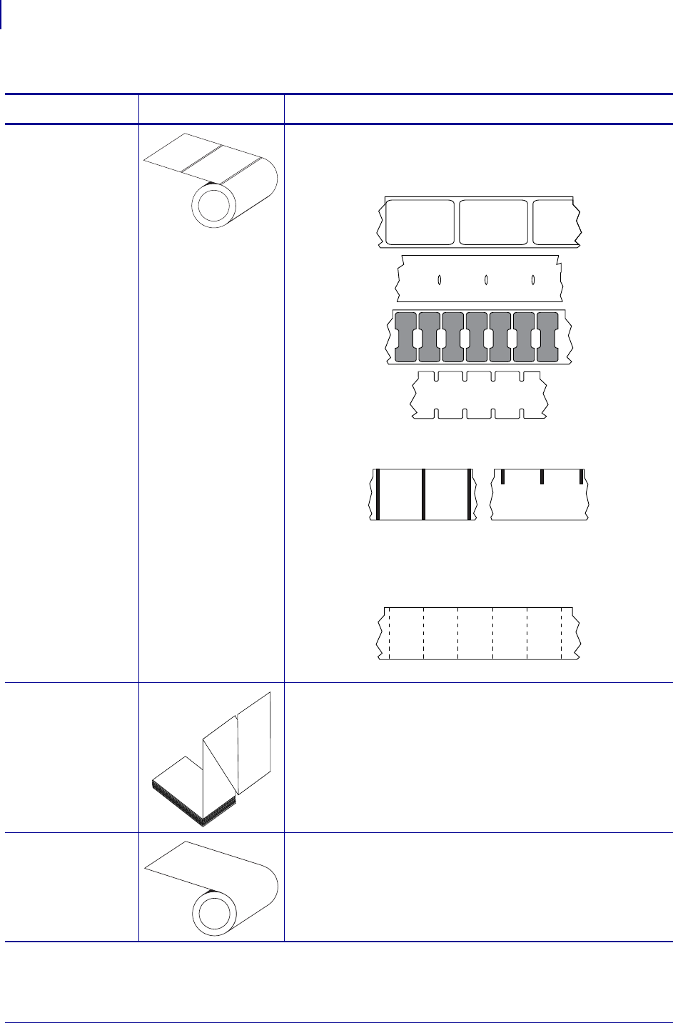 Fanfold media is folded in a zigzag pattern. Fanfold media can