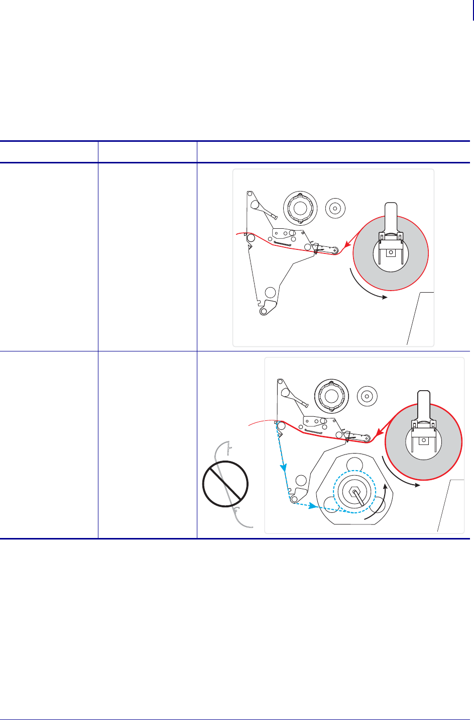 Table 6 shows the media paths for print mode and printer option combinations using roll