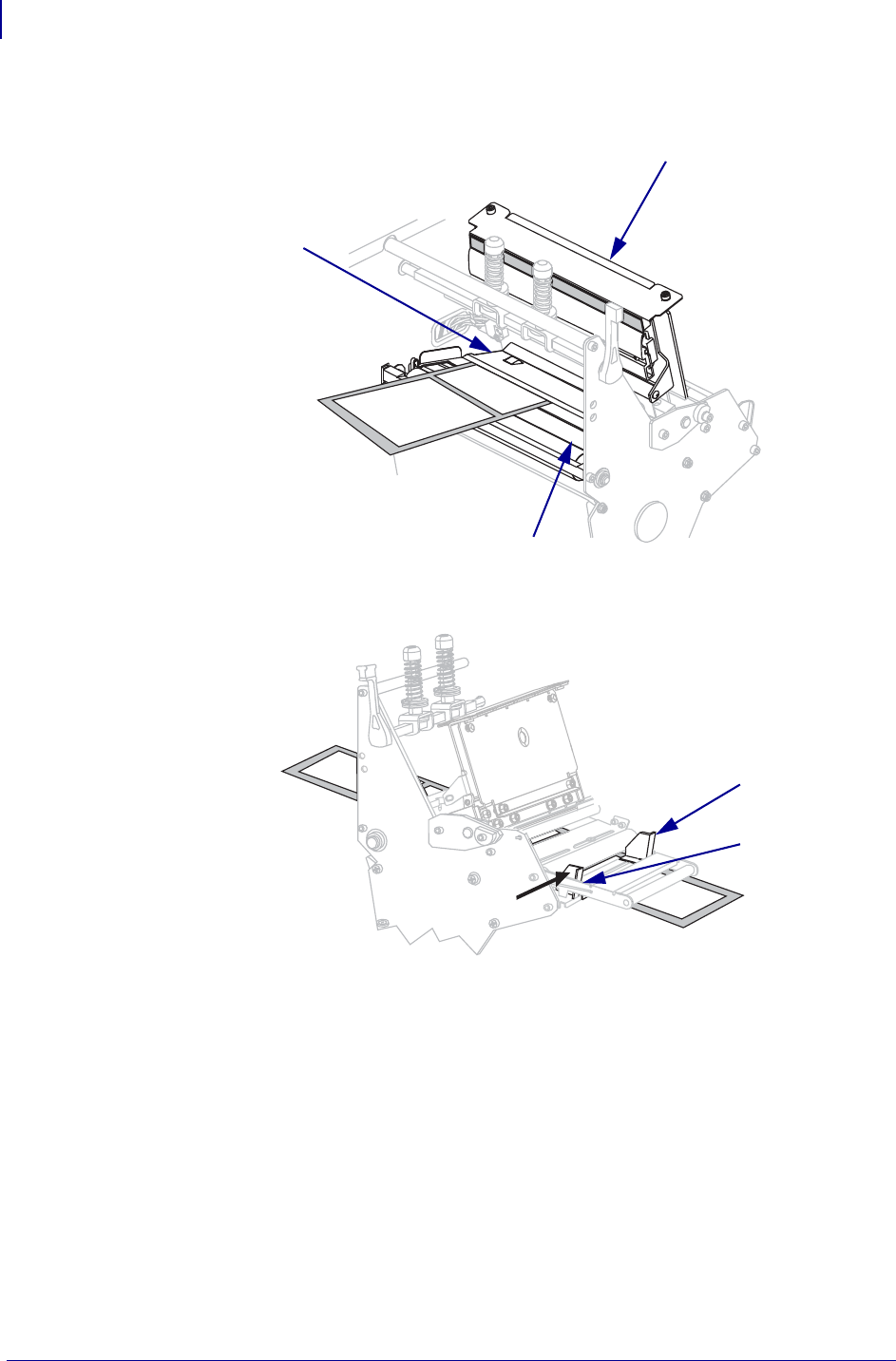 7. Push the media forward until it passes under the printhead assembly (1), under the