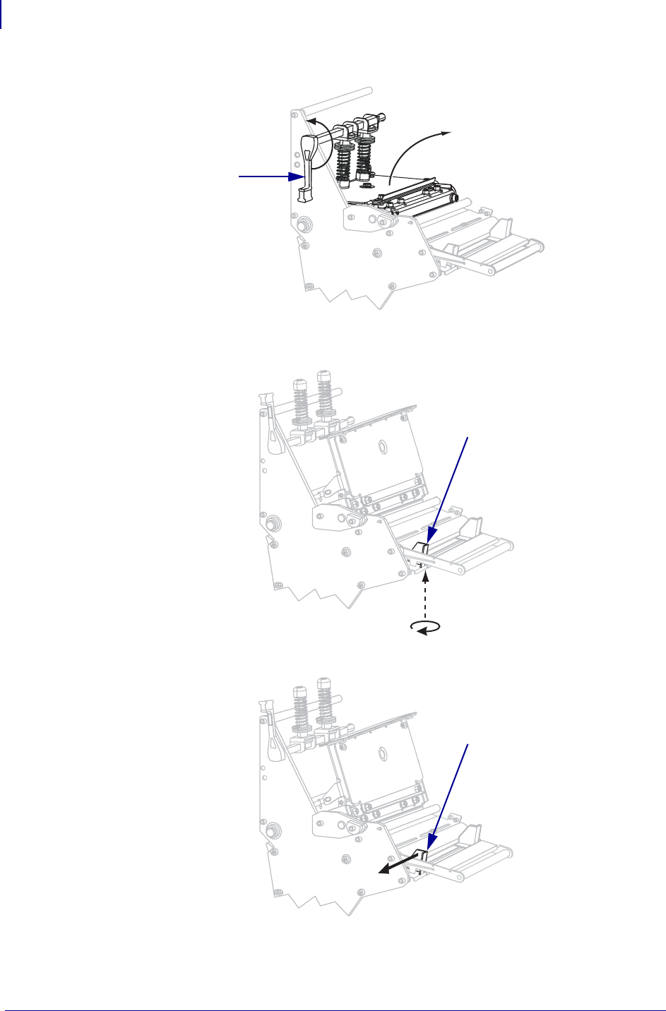 3. Open the printhead assembly by rotating the printhead-open lever (1) counter-clockwise.
