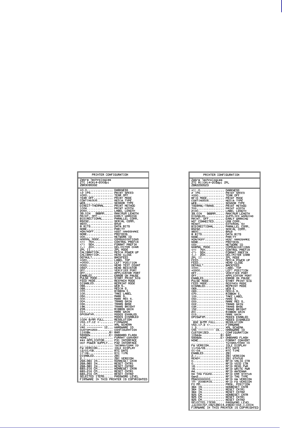 A configuration label lists the printer settings that are stored in configuration memory. After