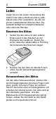 • • • • • • • Scanner CS4070 Lassen oder lagern Sie das Gerät nicht in oder in der Nähe von Umgebungen, die sich stark erhitzen, wie z. B. ein geparktes Auto, eine Heizung oder andere Wärmequellen. Legen Sie den Akku nicht in die Mikrowelle oder den Trockner. Kinder sollten nur unter Aufsicht mit Akkus umgehen. Bitte befolgen Sie die länderspezifischen Vorschriften für die Entsorgung von Akkus. Werfen Sie die Akkus nicht ins Feuer.