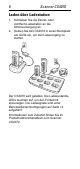 Scanner CS4070 Laden Laden Sie vor der ersten Verwendung des CS4070 den Akku mithilfe des Micro-USB- Kabels oder einer Ladestation, bis alle vier grünen Ladezustands-LEDs leuchten. Die Ladezeit beträgt bei komplett entladenem Akku etwa drei Stunden. Einsetzen des Akkus 1. Setzen Sie den Akku mit dem unteren Ende zuerst in das Akkufach an der Rückseite des Geräts ein. Stellen Sie sicher, dass die Ladekontakte in Richtung der Unterseite des Scanners zeigen. 2.