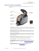 1: Getting Started Features, Controls, and Indicators Features, Controls, and Indicators The picture below points out some of the printer’s external features; see Section 3 for an interior view. Card Feeder Cover Quick Help QR Code Lid Release Button Multi-Function LCD Display Panel Multi-Function Control Button Card Output Hopper Zebra Print Touch Tag • Card Feeder Cover - Opening the Card Feeder Cover gives access to the automatic card feeder.
