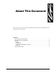 Contents Contents . . . . . . . . . . . . . . . . . . . . . . . . . . . . . . . . . . . . . . . . . . . . . . . . . . . . . . . . . iii About This Document . . . . . . . . . . . . . . . . . . . . . . . . . . . . . . . . . . . . . . . . . . . . . . . 1 Who Should Use This Document . . . . . . . . . . . . . . . . . . . . . . . . . . . . . . . . . . . . . . . . . . . . How This Document Is Organized . . . . . . . . . . . . . . . . . . . . . . . . . . . . . . . . . . . . . . . . . . . Contacts . . . . . . . .