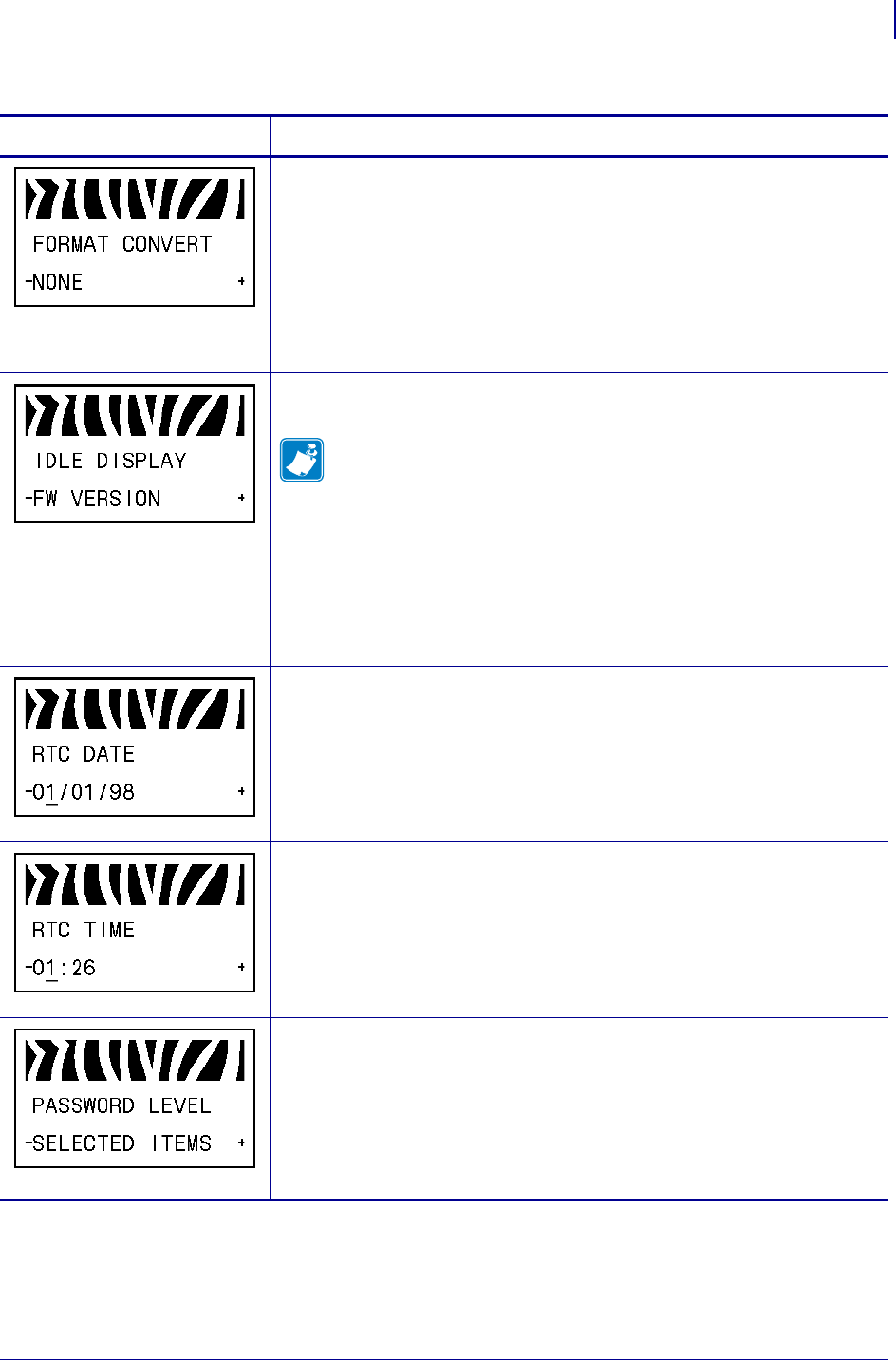 MINUS (-) briefly displays the firmware version of the printer.