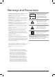 Warnings and Precautions • CAUTION: TO PREVENT ELECTRIC SHOCK, MATCH WIDE BLADE OF PLUG TO WIDE SLOT, FULLY INSERT. • WARNING: To reduce the risk of fire or electric shock, do not expose this apparatus to rain or moisture. • AVERTISSEMENT: Pour réduire le risque d’incendie ou de choc électrique, ne pas exposer cet appareil sous la pluie et l’humidité.