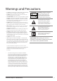 Warnings and Precautions • CAUTION: TO PREVENT ELECTRIC SHOCK, MATCH WIDE BLADE OF PLUG TO WIDE SLOT, FULLY INSERT. • WARNING: To reduce the risk of fire or electric shock, do not expose this apparatus to rain or moisture. • AVERTISSEMENT: Pour réduire le risque d’incendie ou de choc électrique, ne pas exposer cet appareil sous la pluie et l’humidité.