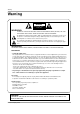 Warning Warning WARNING RISK OF ELECTRIC SHOCK DO NOT OPEN WARNING: TO REDUCE THE RISK OF ELECTRIC SHOCK DO NOT REMOVE COVER (OR BACK). NO USER SERVICEABLE PARTS INSIDE. REFER TO QUALIFIED SERVICE PERSONNEL. The lightning flash with arrowhead symbol, within an equilateral triangle, is intended to alert the user to the presence of uninsulated “dangerous voltage” within the product’s enclosure that may be of sufficient magnitude to constitute a risk of electric shock to persons.