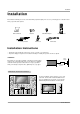 Installation Monitor Display Specifications (RGB-PC / DVI-PC Mode) Resolution 640x350 720x400 640x480 800x600 832x624 848x480 Vertical Horizontal Frequency(KHz) Frequency(Hz) 31.468 70.09 Resolution Horizontal Vertical Frequency(KHz) Frequency(Hz) 31.500 60.00 37.861 85.08 35.000 70.00 31.469 70.08 37.500 75.00 37.927 85.03 48.363 60.00 31.469 59.94 56.476 70.06 35.000 66.66 60.023 75.02 37.861 72.80 54.348 60.05 37.500 75.00 63.995 70.01 43.269 85.00 67.500 75.