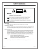 SAFETY WARNINGS WARNING RISK OF ELECTRIC SHOCK DO NOT OPEN WARNING: TO REDUCE THE RISK OF ELECTRIC SHOCK DO NOT REMOVE COVER (OR BACK). NO USER SERVICEABLE PARTS INSIDE. REFER SERVICING TO QUALIFIED SERVICE PERSONNEL. The lightning flash with arrowhead symbol, within an equilateral triangle, is intended to alert the user to the presence of uninsulated “dangerous voltage” within the product’s enclosure that may be of sufficient magnitude to constitute a risk of electric shock to persons.