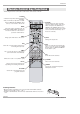 Introduction Remote Control Key Functions POWER Turns your TV or any other programmed equipment on or off, depending on mode. TV/VIDEO TV INPUT MODE GUIDE Shows program schedule. DAY + DAY GUIDE THUMBSTICK (Up/Down/Left/Right/ENTER) Allows you to navigate the on-screen menus and adjust the system settings to your preference. EXIT CC Select a closed caption: Off, CC1~4, Text1~4. VCR/DVD BUTTONS • Control some video cassette recorders or DVD players.
