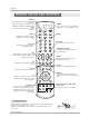 Introduction Remote Control Key Functions - When using the Remote Control, aim it at the remote control sensor on the TV. MODE Selects the remote operating mode: TV, VCR, Cable, DVD and Satellite. Select other operating modes, for the remote to control external devices. VCR CABLE DVD SAT TV MODE TV/VIDEO Selects: Analog, Video1, Video2, Front video, Component1-2, RGB, HDMI1/DVI and HDMI2 input sources. NUMBER KEYPAD For direct channel selection and programming functions.