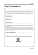Safety Instructions Safety Instructions IMPORTANT SAFETY INSTRUCTIONS Important safety instructions shall be provided with each apparatus. This information shall be given in a separate booklet or sheet, or be located before any operating instructions in an instruction for installation for use and supplied with the apparatus. This information shall be given in a language acceptable to the country where the apparatus is intended to be used.