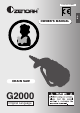 G2000 EXPLANATION OF SYMBOLS AND SAFETY WARNINGS Read operator's instruction book before operating this machine. Wear head, eye and ear protection. Use the chain saw with two hands. Warning! Danger of kickback. Use appropriate protections for foot-leg and hand-arm. Read, understand and follow all warnings. This saw is for trained tree service operators only. Never touch hot surface. WARNING!!! RISK OF DAMAGING HEARING Wear head, eye and ear protection. MODEL DISPLACEMENT G2000 18.
