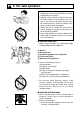 SAFETY FIRST Instructions contained in warnings within this manual marked with a symbol concern critical points which must be taken into consideration to prevent possible serious bodily injury, and for this reason you are requested to read all such instructions carefully and follow them without fail. ■ WARNINGS IN THE MANUAL WARNING This mark indicates instructions which must be followed in order to prevent accidents which could lead to serious bodily injury or death.