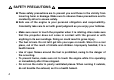 SAFETY PRECAUTIONS ● These safety precautions are to prevent you and those in the vicinity from incurring harm or damage. Make sure to observe these precautions and to constantly strive to ensure safety. ● Safe use of the engine is your personal obligation and responsibility. Constantly take care to act with good judgment as you enjoy your hobbies. • Make sure never to touch the propeller when it is rotating.