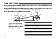 FUEL AND PIPING ● For gasoline, please use either regular or high octane, for cars. (The octane number should be 85 or higher.) ● For oil, use a high-performing mixed lubrication type of 2-cycle engine oil (F3C grade or ISO EGC grade) and make the fuel volume ratio 1 (oil) to 25-40 (gasoline). ● For fuel piping, refer to the diagram shown below. (7) (1) (5) (4) (5) (2) (8) (3) (6) • Do not use a silicon tube. • Clip the weight so that it does not come off when the engine is running. 8 1. 2. 3. 4.
