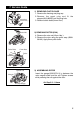 3. Engine Starting • Push the primer pump several times until overflown fuel flows out. (Fig.1) • Close the choke lever(Fig.2), and move the throttle lever 1/4~1/3 open position. • Pull the starter(knob) quickly until first firing noise. (Fig.3) • Open the choke(Fig.2), throttle idle~1/4 open • Pull the starter quickly • Operate engine for a few minutes for the warming up. Fig.1 Fig.2 Throttle Lever IMPORTANT Open Close Fig.