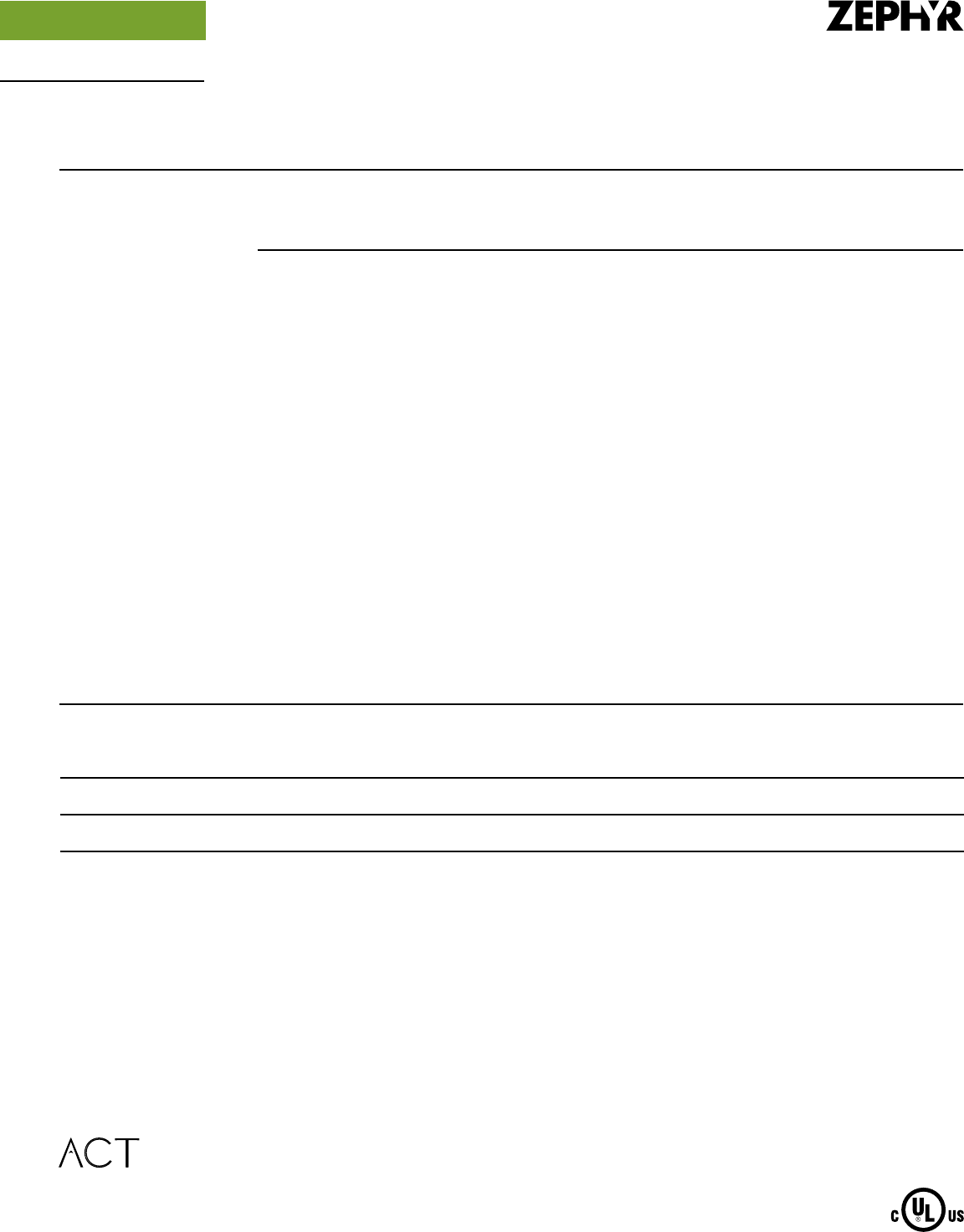 Specications subject to change, check zephyronline.com for up-to-date information.