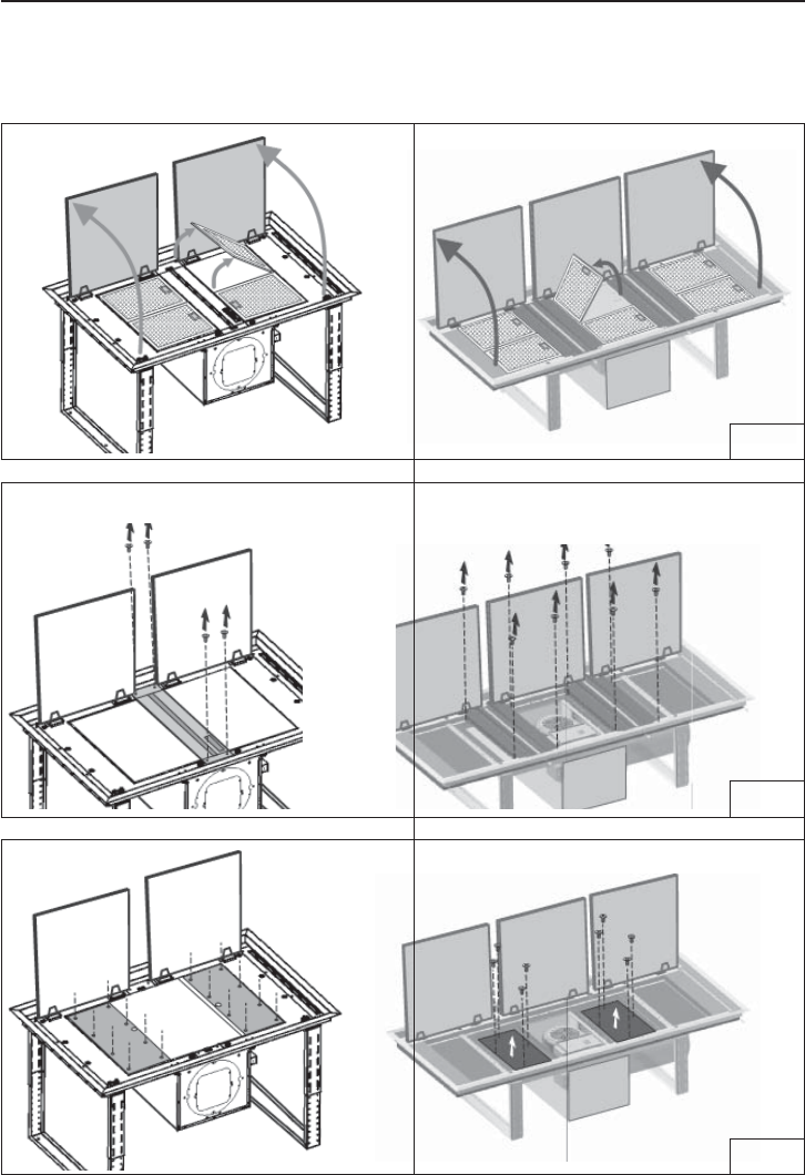 Modèle ALU-E43: retirer 8+8 vis. Modèle ALU-E63: retirer 4+4 vis.