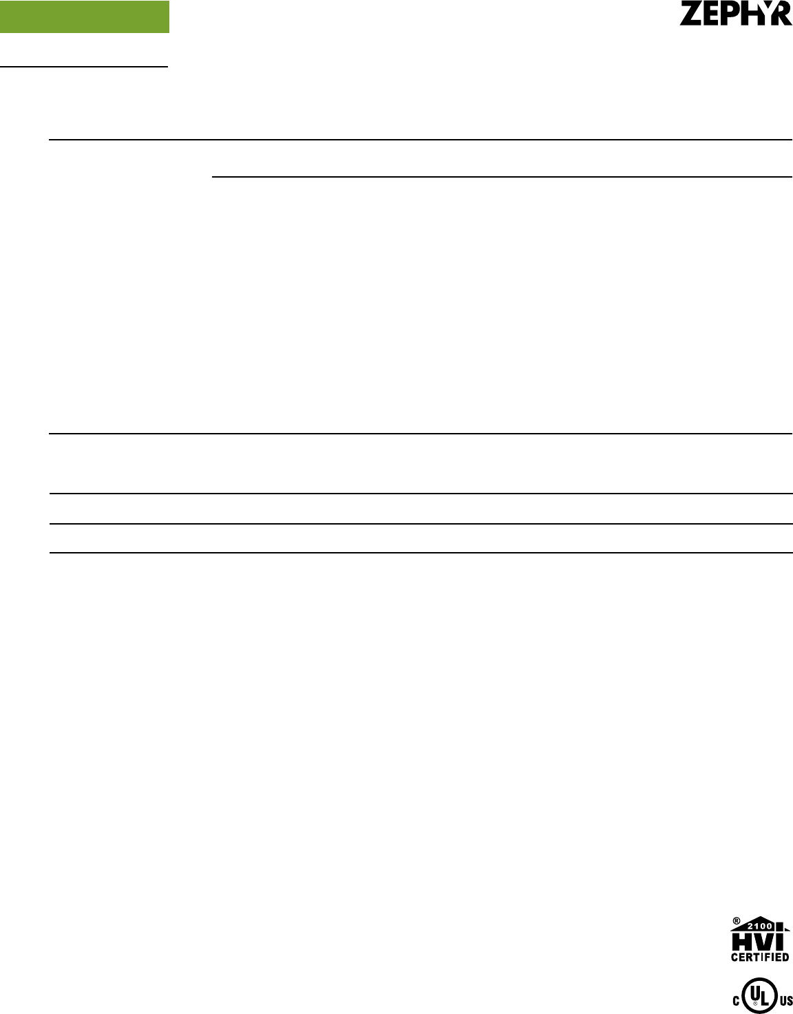 Specifications subject to change, check zephyronline.com for up-to-date information.