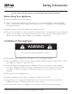 PRESRV™ Safety Information BEVERAGE COOLER S I N G L E ZO N E For your safety, read all instructions carefully before operating the appliance. Ź The appliance must be installed to all electrical connections in accordance with state and local codes. Ź Use two or more people to move and install the beverage cooler. Failure to do so can result in back or other injury. Ź The cooler may experience decreased cooling efficiency if air flow is restricted due to a fully loaded cabinet.