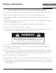 PRESRV™ Safety Information WINE & BEVERAGE COOLER D U A L ZO N E For your safety, read all instructions carefully before operating the appliance. Ź The appliance must be installed to all electrical connections in accordance with state and local codes. Ź Use two or more people to move and install the wine and beverage cooler. Failure to do so can result in back or other injury. Ź The cooler may experience decreased cooling efficiency if air flow is restricted due to a fully loaded cabinet.
