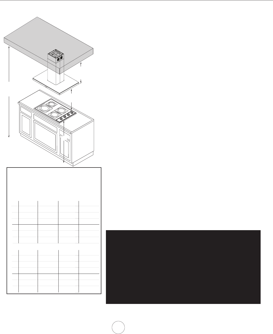 de montage de la hotte au-dessus de la surface de cuisson. Informez-vous